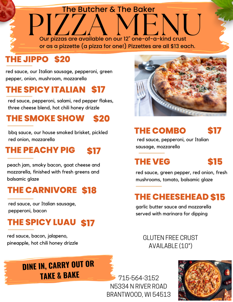 We offer our homemade, made-to-order pizzas and pizzettes every day. And don’t forget to check out our frozen homemade pizzas!